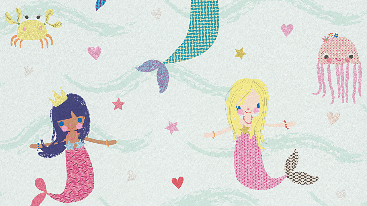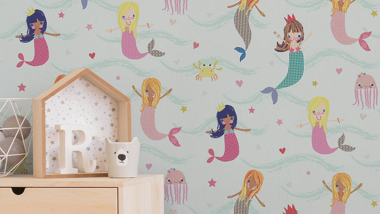 carta da parati di carta da parati per bambini Boys & Girls 6 A.S. Création carta da parati per bambini sirene blu multicolore verde 691