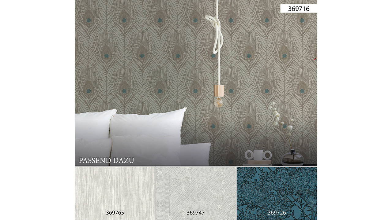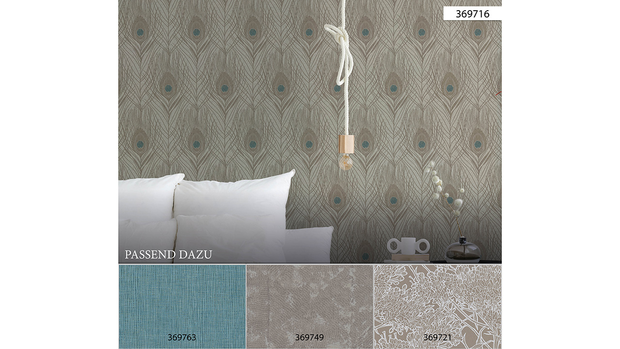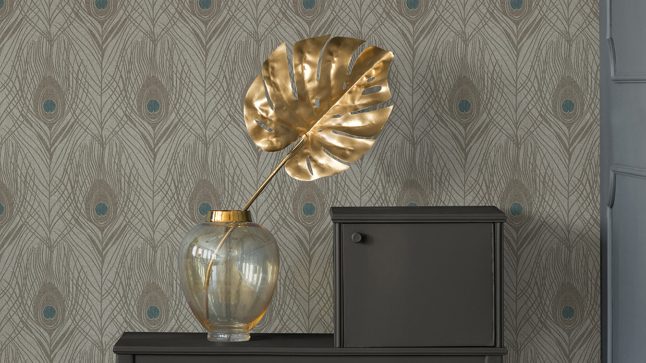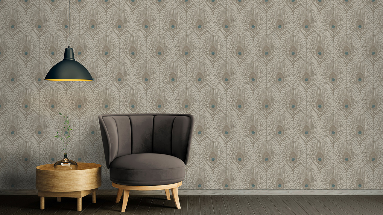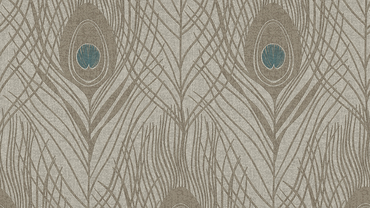 Carta da parati in vinile Assolutamente Chic Architetti Carta Carta Retro Pavone Piume Blu Marrone Grigio 716