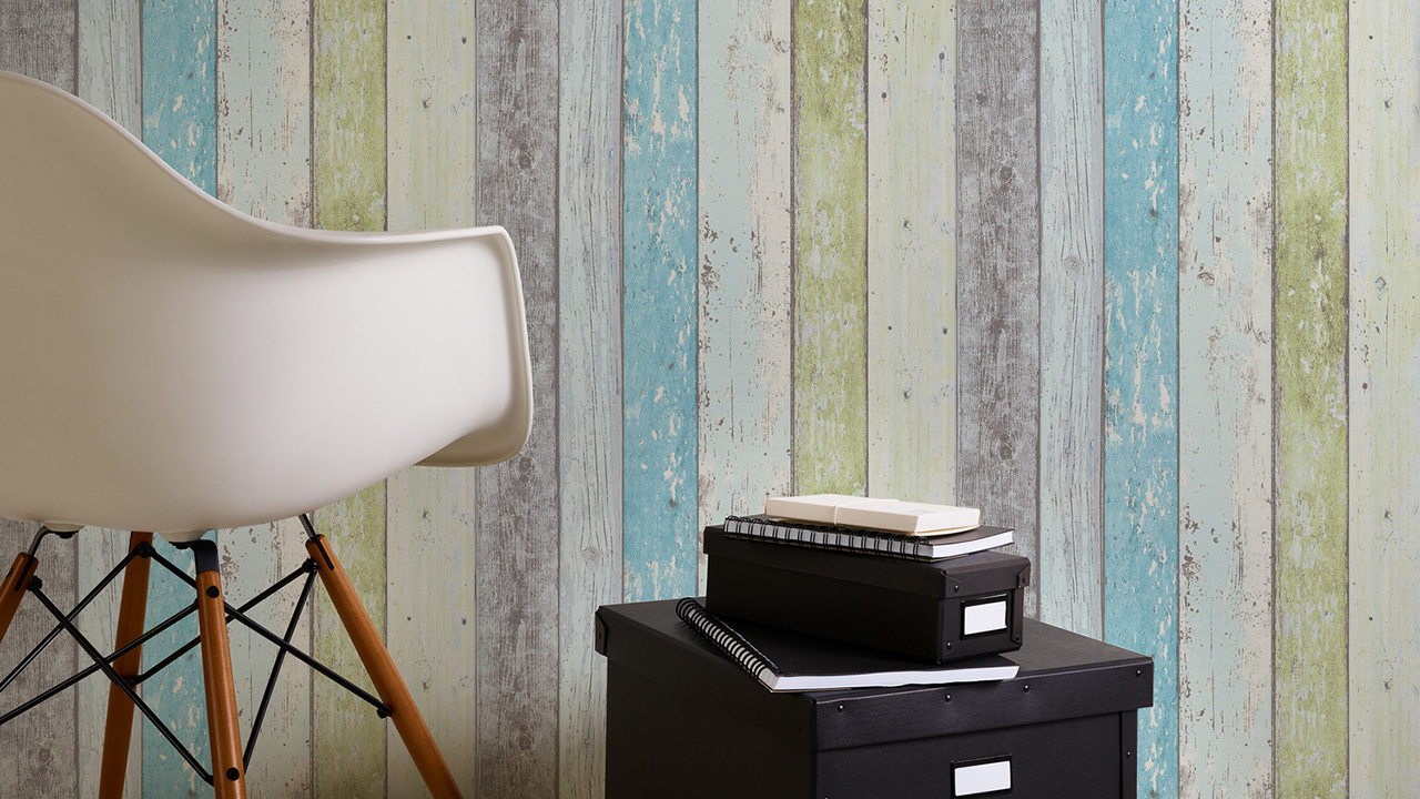 Carta da parati in vinile Best of Wood'n Stone 2a edizione A.S. Création in stile rustico in legno, parete in legno blu verde bianco 077