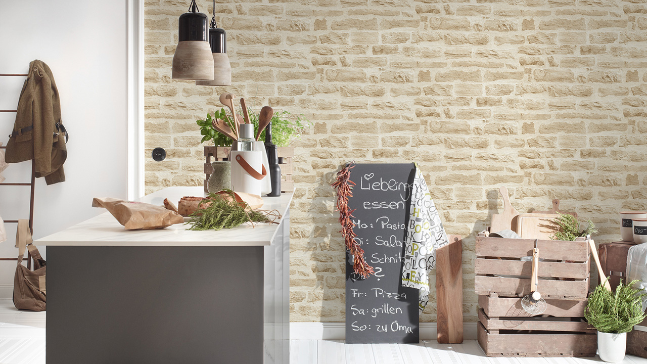 Carta da parati in vinile Best of Wood'n Stone 2a edizione A.S. Création muro in pietra beige crema 802