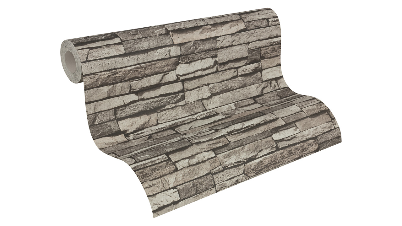 Carta da parati in vinile Best of Wood'n Stone 2a edizione A.S. Création muro in pietra grigio crema nero 331