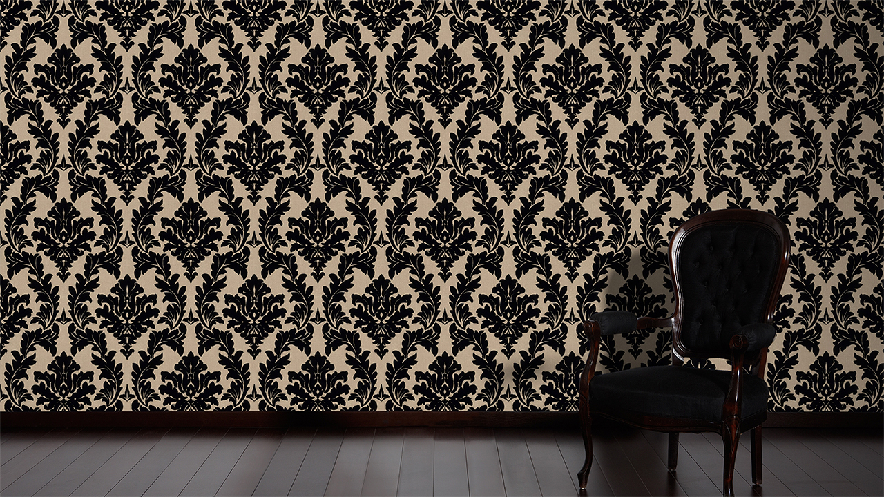 Carta da parati in vinile flocculata Castello Architects Ornamenti in carta nera metallizzata 804