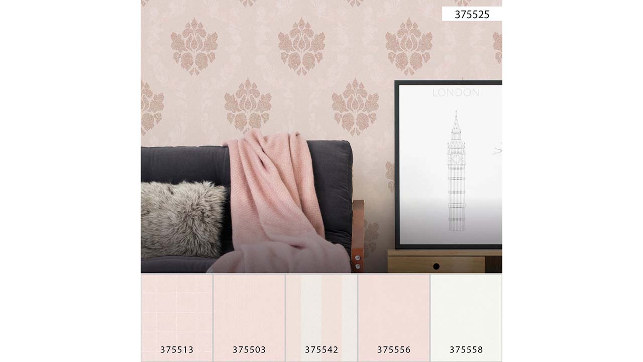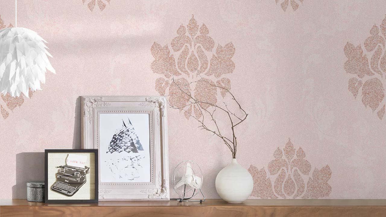 Carta da parati in vinile rosa fiori moderni e ornamenti naturali Nuova Eleganza 525