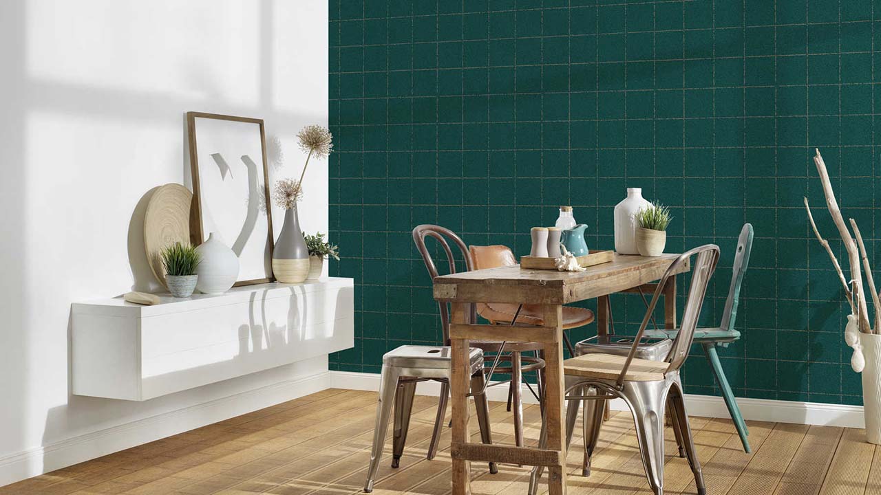 carta da parati in vinile verde moderno retrò a strisce Nuova Eleganza 511
