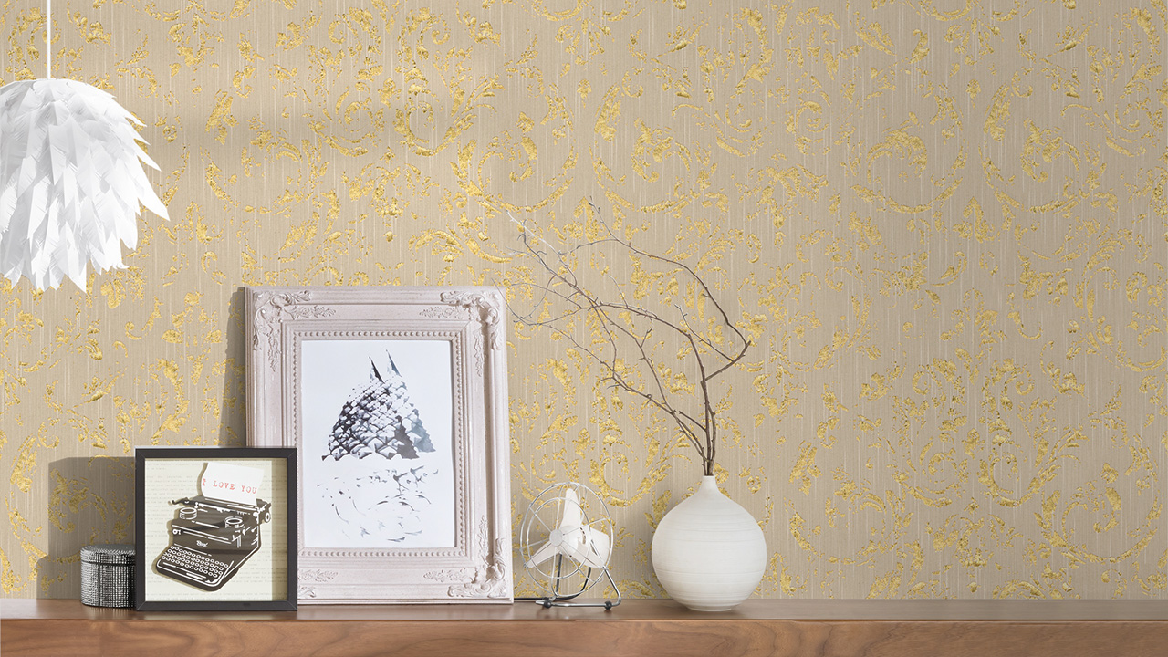Carta da parati tessile Metallic Silk Architects Architects Carta Ornamenti Beige Metallic 602