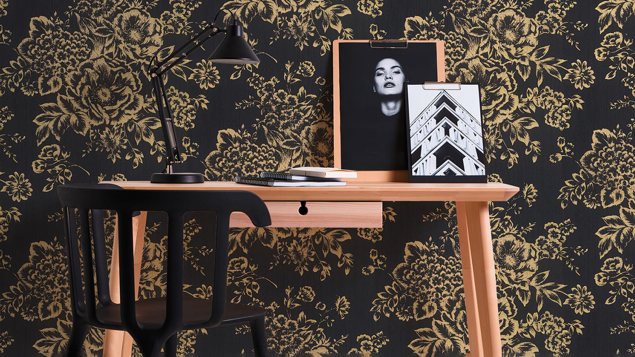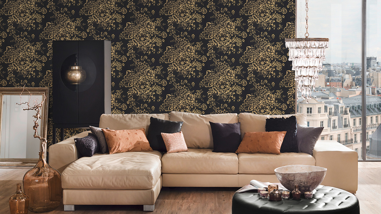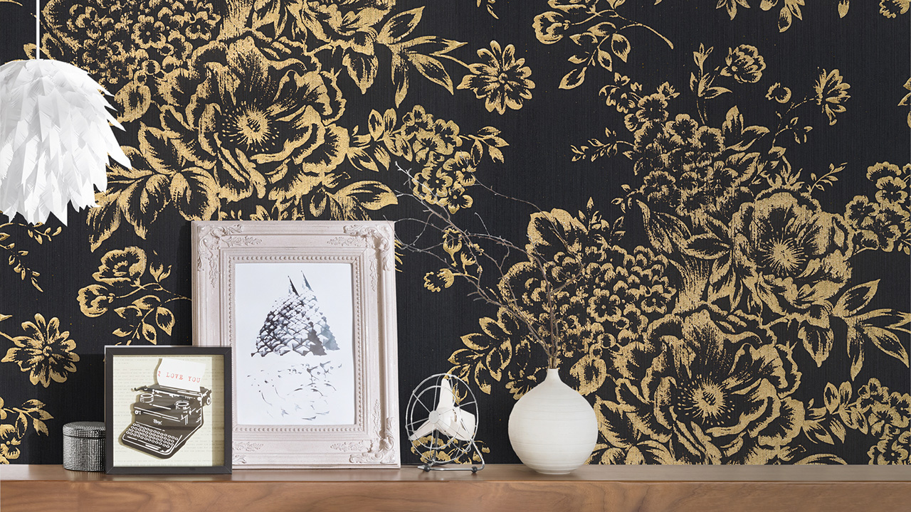Carta da parati tessile Metallic Silk Architects Architects Carta stile country fiori neri metallici 577