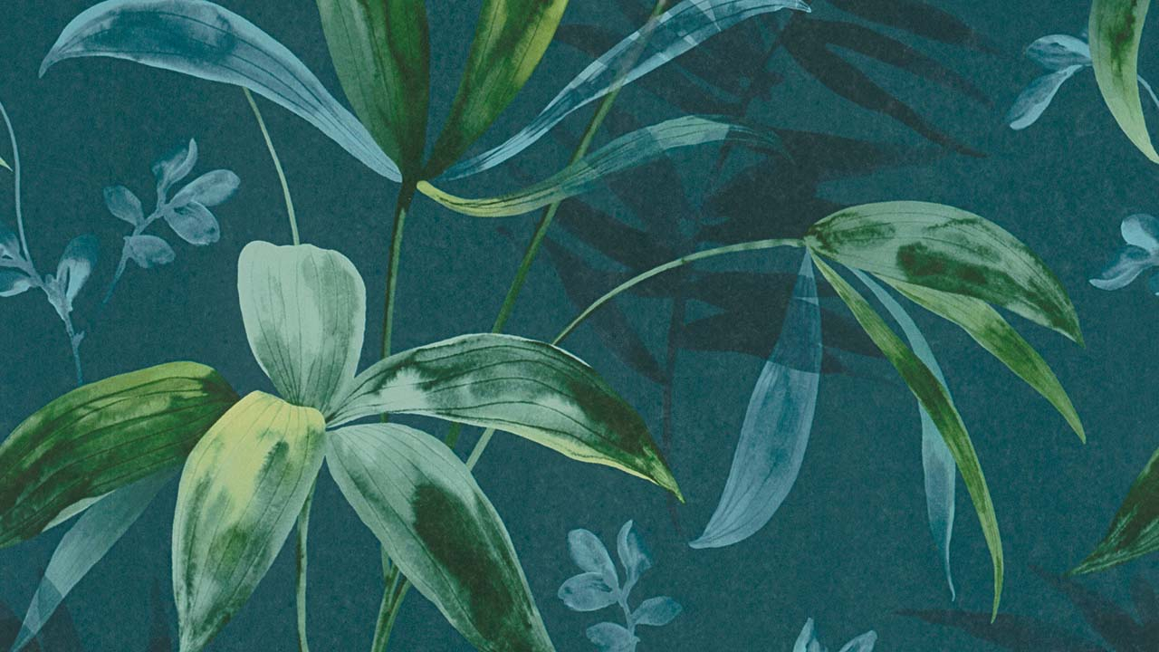 Vliestapete Jungle Chic Blumen & Natur Retro Blau 44