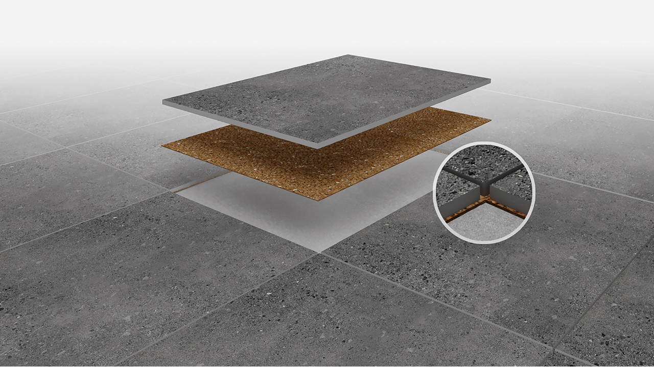 La forza complessiva del pavimento è creata dall'enorme adesione laterale del giunto alla lastra del sistema.