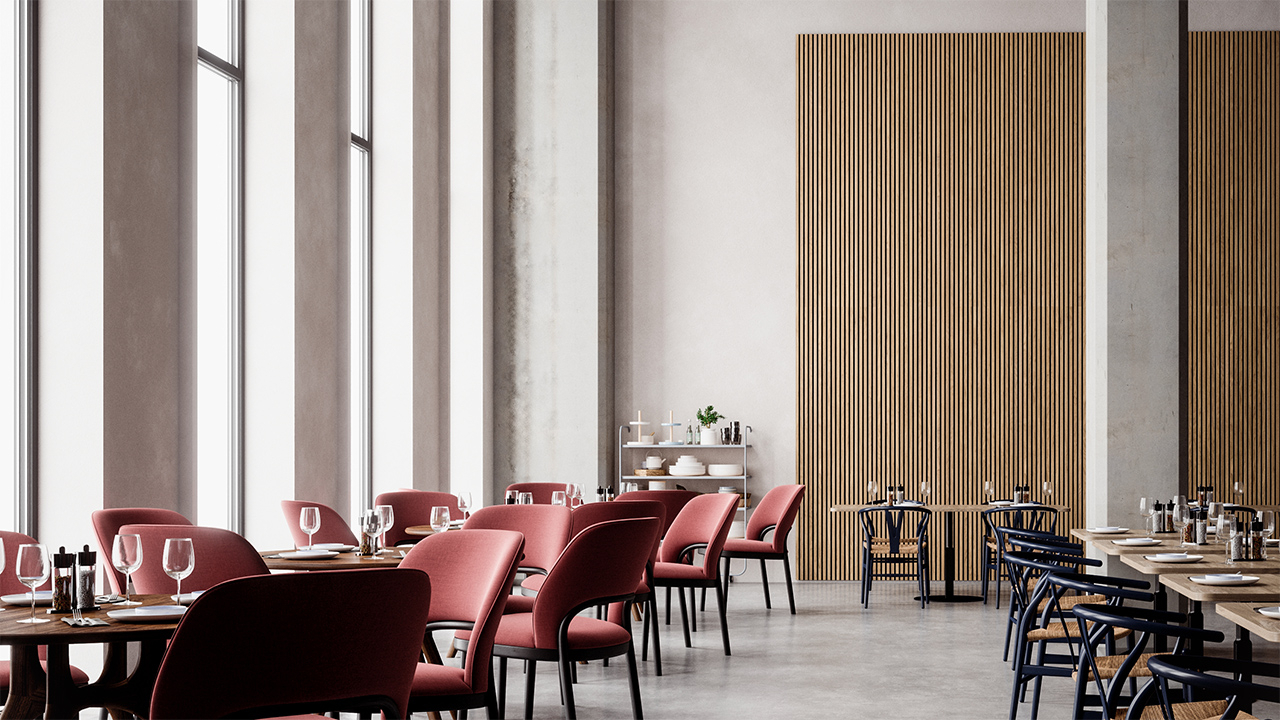 Questi pannelli acustici sono stati sviluppati per gli arredi interni in cui design, isolamento acustico e protezione antincendio sono ugualmente importanti. La superficie con un look a lamelle di grande impatto conferisce agli ambienti un effetto architettonico di alta qualità, mentre il lato posteriore, efficace dal punto di vista acustico, contribuisce a ridurre significativamente il riverbero e a migliorare la qualità del soggiorno.