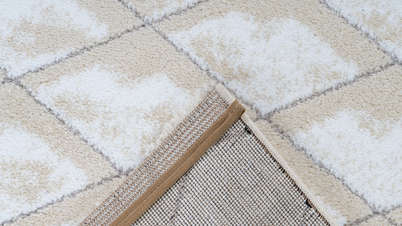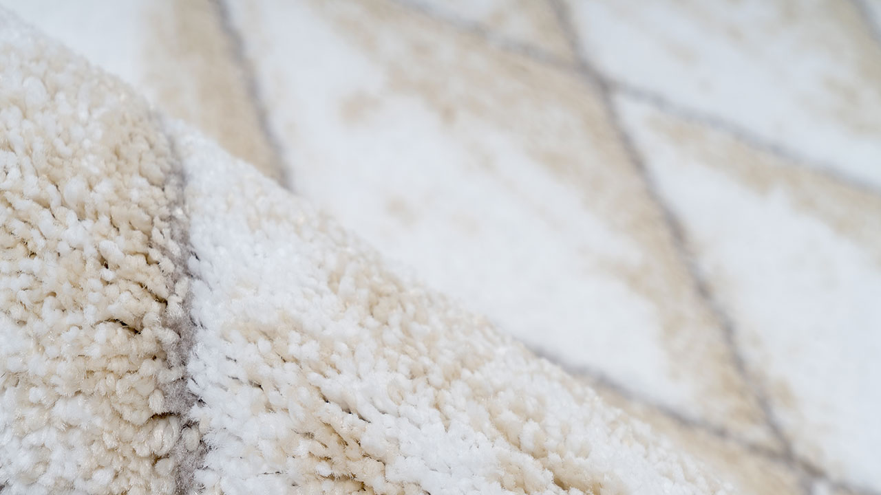 La pila è densamente tessuta e ha un effetto tridimensionale. Il processo di frisée heatset utilizzato crea altezze e profondità nel vello del tappeto che creano il look 3D. Anche apticamente questa presentazione è un'esperienza, perché le diverse altezze sono abbastanza palpabili. La parte inferiore del tappeto è rinforzata da un supporto in iuta. Nelle stanze con riscaldamento a pavimento, la moquette può essere utilizzata senza problemi.