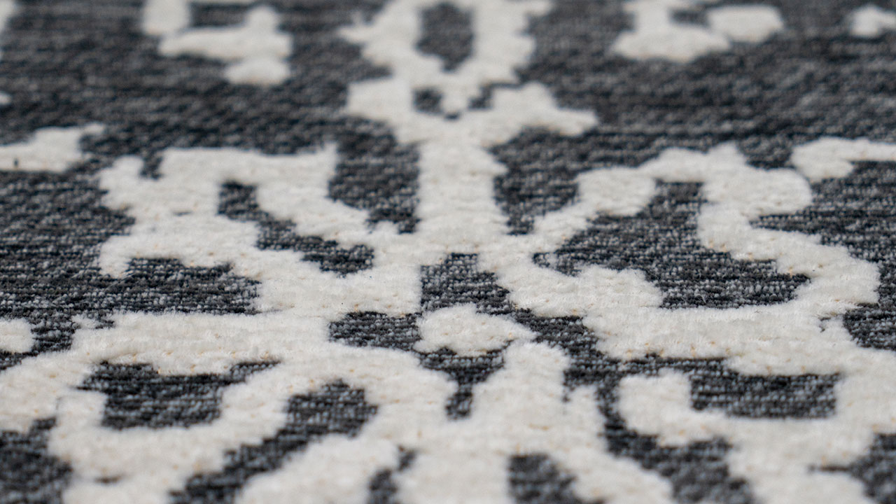 Questo tappeto in pile piatto combina un attraente motivo dal design vintage con una combinazione di sottili sfumature. Collocata nei vostri spazi abitativi, la moquette diventa un bellissimo rivestimento per pavimenti che è emozionante e allo stesso tempo si integra nei vostri interni. Oltre all'aspetto visivo, il tappeto dal design vintage può essere visto anche apticamente. Il morbido vello in tessuto jacquard-woven offre una piacevole sensazione sotto i piedi e promette comfort nei vostri spazi abitativi. Allo stesso tempo, grazie al mix di materiali di facile manutenzione, la superficie è facile da pulire e conserva a lungo la sua colorazione.