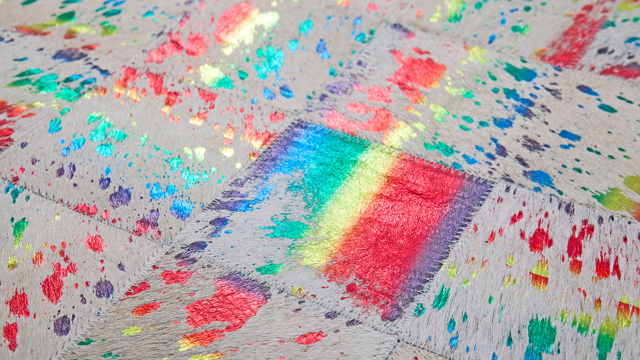 Applicazioni metalliche su vera pelle con pelo morbido distinguono questo tappeto. Portate a casa l'eye-catcher individuale e i vostri visitatori rimarranno stupiti. Le basi del tappeto in pelle con disegno patchwork sono in diverse tonalità di un unico colore. La lamina metallica stampata è il fiore all'occhiello del tappeto, mette in risalto e fa brillare il tappeto.