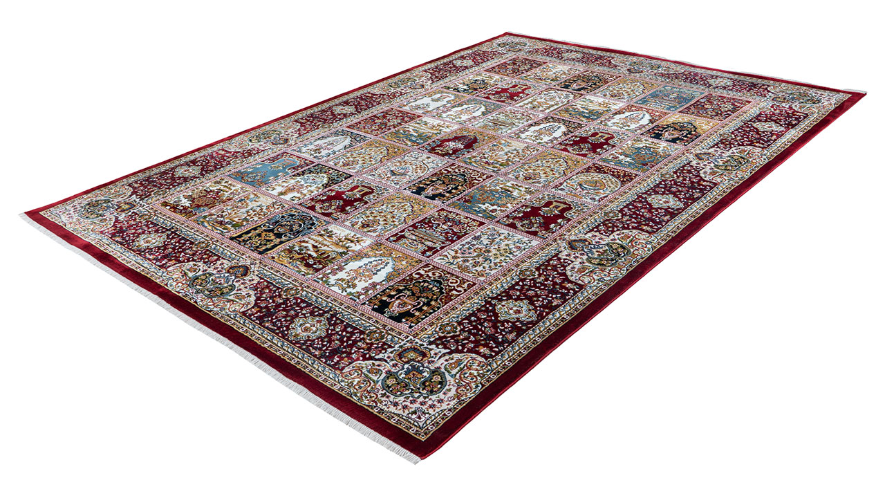 Questo tappeto dal design orientale porta un tocco esotico in ogni salotto. Colori armoniosi e contrasti creano una sensazione di classe extra. Grazie all'intensa colorazione e al design orientale ed elegante, il tappeto diventerà rapidamente un elemento di attrazione in ogni stanza, accentuerà il vostro arredamento e vi offrirà un elevato grado di intimità. A causa di felci morbide alle estremità del tappeto e di un kettelung laterale si evita lo sfilacciamento della fibra.