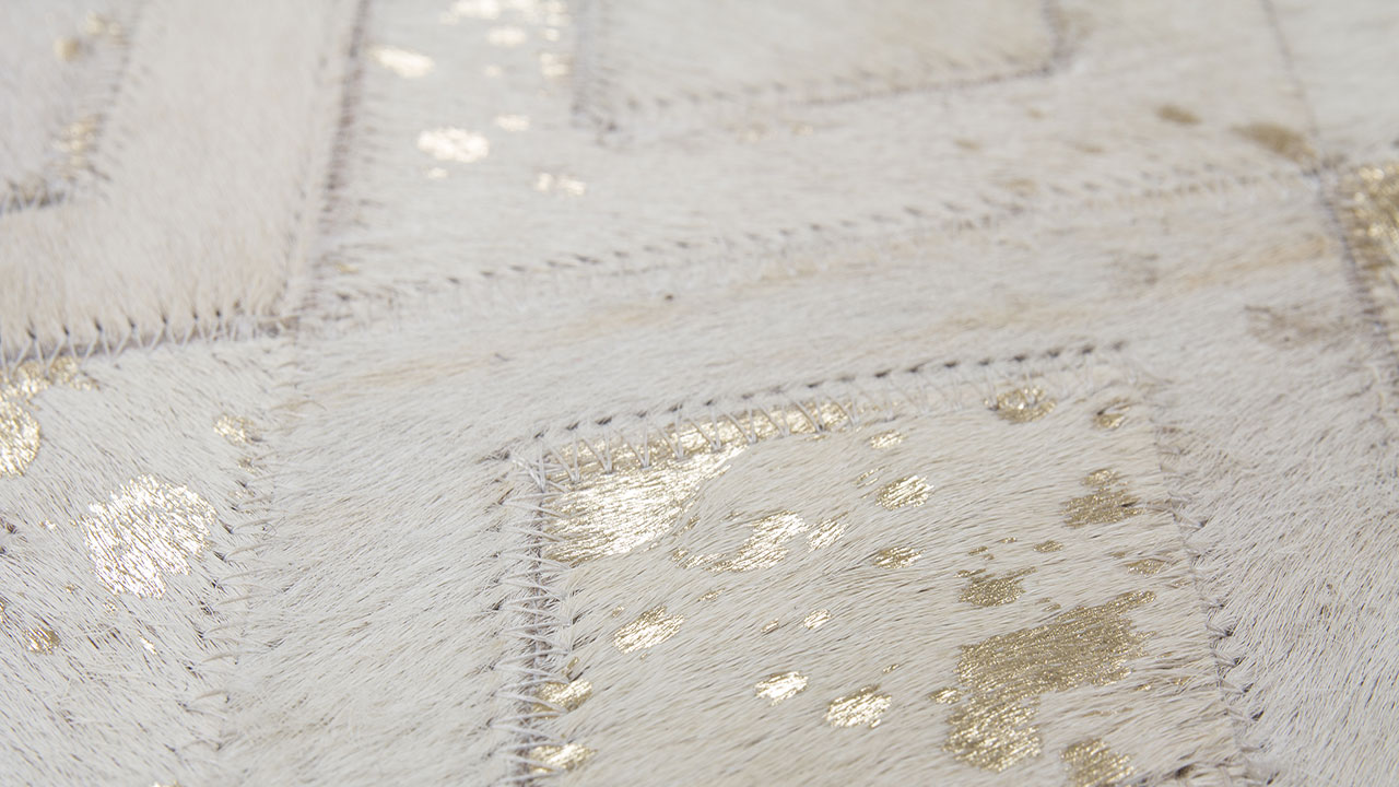 Il bellissimo tappeto in pelle con applicazioni incorporate di lamina metallica completa sapientemente ogni nobile stile d'interni. Il tappeto nobile di alta qualità in 100% pelle trasmette un tocco individuale all'ambiente circostante e crea un'atmosfera molto particolare. Realizzato a mano, ogni singolo tappeto in pelle è unico. L'uso di materiali naturali nobili e la lavorazione di alta qualità garantiscono un aspetto dinamico e rendono ogni tappeto unico, perché con i prodotti naturali possono esserci deviazioni fino al 30% nella forma, nel colore e nel disegno. La pelliccia naturale può perdere i peli dopo un certo tempo e con un uso pesante, se necessario. Allo stesso modo, la pellicola metallica potrebbe staccarsi in determinate circostanze. Ciò è dovuto al prodotto naturale e alla natura della pelliccia e non è un difetto di fabbricazione.
